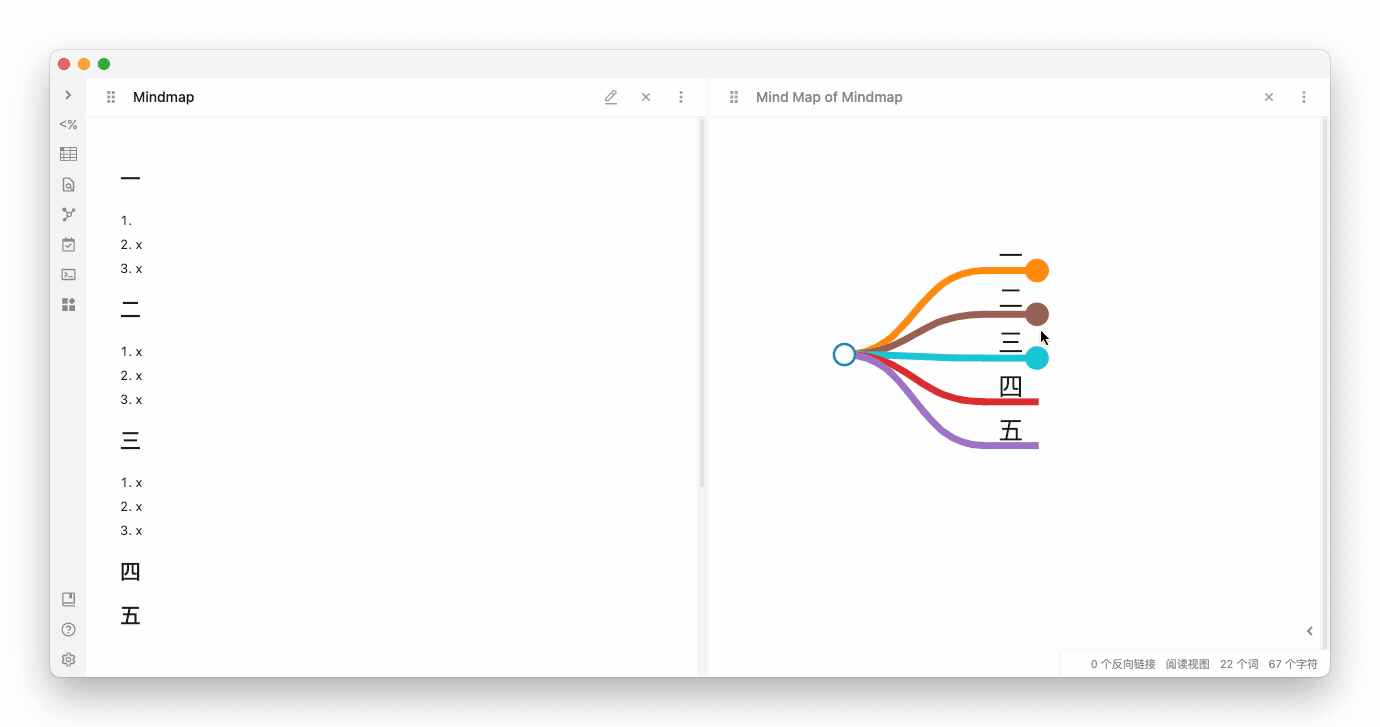 这个插件能够让文档的各级标题成为思维导图中的各个节点,并且导图中的各个节点也都是可以点击的。虽然导图的样式单一,且配色实在辣眼,但胜在简单易用。