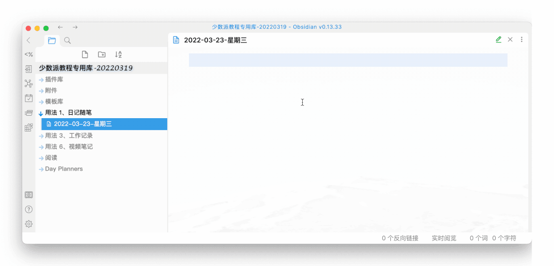 你可能注意到了,上图调用模板生成文档时,还自动生成了时间 2022-03-22,原因是我在模板中使用了 Templater 提供的时间变量,用法类似 Excel 中的 =today() 函数。