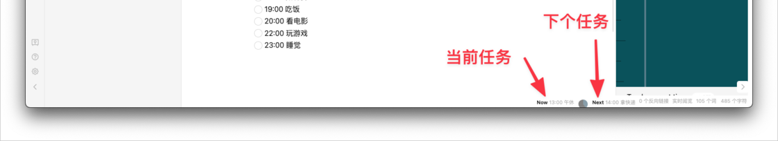 Day Planner 与前文提到的 Tasks ,都能对笔记库中的 To-do 内容进行集中管理,Tasks 插件会更自由灵活,它能够扫描到笔记库内任意地方的 To-do 内容;而 Day Planner 则只能扫描特定的文件夹,但换来了更加精细、更加有趣的日程/任务管理方式,包括文档顶部自动生成甘特图、右侧自动生成时间线、底部右下角有全局的任务提示等。