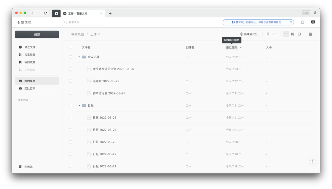 如此一来,当我们在 会议记录 文件夹新建文档,它创建的就不是空白文档,而是加载了模板的文档了。