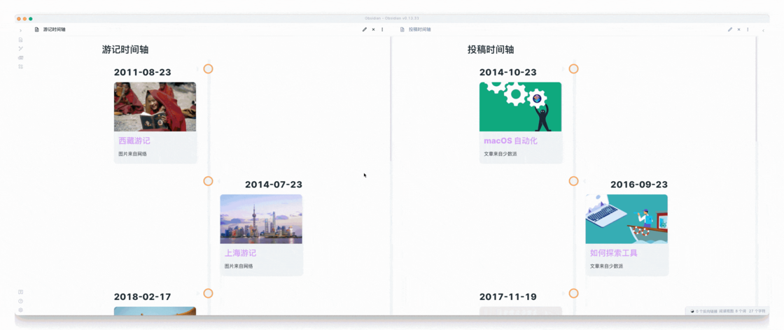 你可以做一份投稿时间轴,也可以做一份游记时间轴,其实没有什么实际用处,但因为它能做,所以我就做啦。