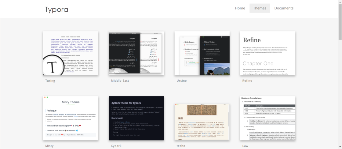 选择不同的主题可以使文档拥有不同的外观,但不会影响内容。Typora 自带了若干主题,你也可以在 官网 下载更多的主题。