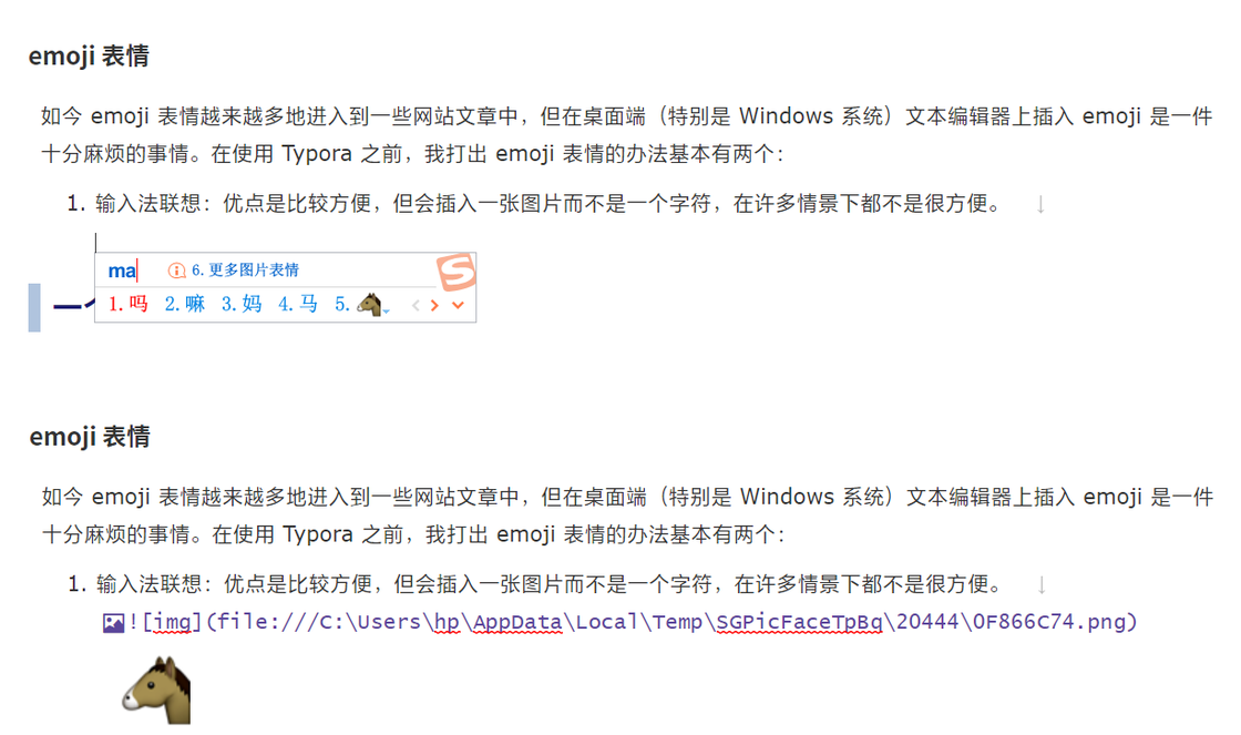 如今 emoji 表情越来越多地出现在一些网站文章中,但在桌面端(特别是 Windows 系统)文本编辑器上插入 emoji 是一件十分麻烦的事情。在使用 Typora 之前,我打出 emoji 表情的办法基本有两个: