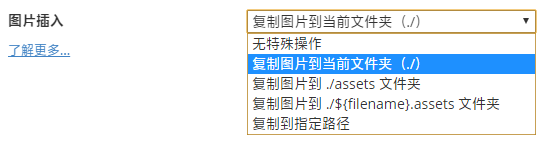 在图片插入的选项中,Typora 用了「复制图片到 ./${filename}.assets 文件夹」的说法,而这其实是网页前端常用的 Javascript 字符串模板语法的风格。