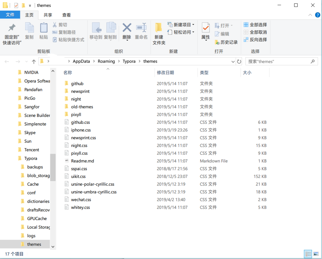 为了让文档更美观,我们可以为其加上 CSS style。我认为 Typora 对 CSS 的支持让它成为一众桌面笔记应用中最与众不同的一个。在 Typora 中 CSS 被称为「主题」,但其本质仍是 CSS 文件。你可以在 文件 - 偏好设置 - 主题 - 打开主题文件夹 看到这些 CSS 文件。